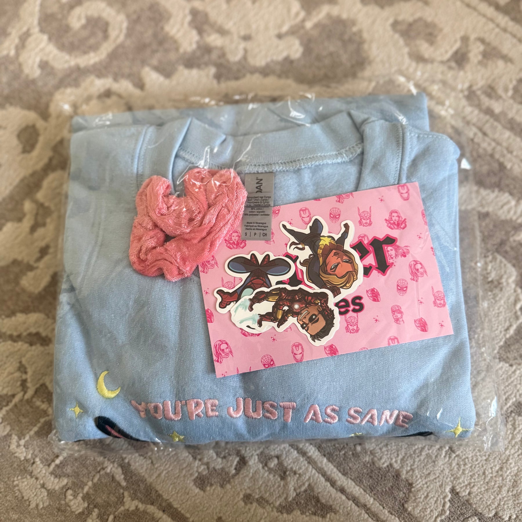 - Do not iron over design/ do not bleach